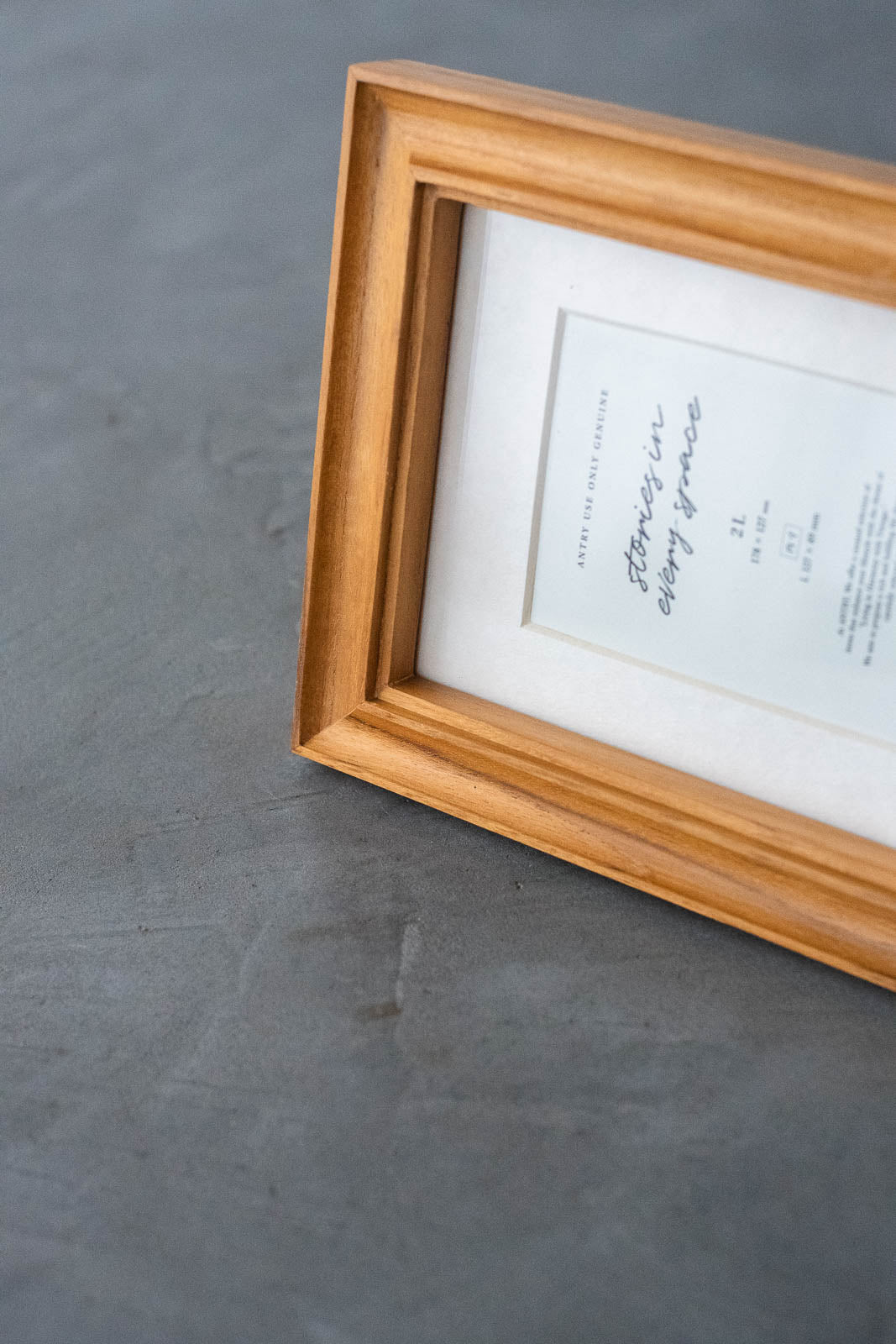 上質なチーク材を使用し、自然の風合いを生かしたフォトフレーム。