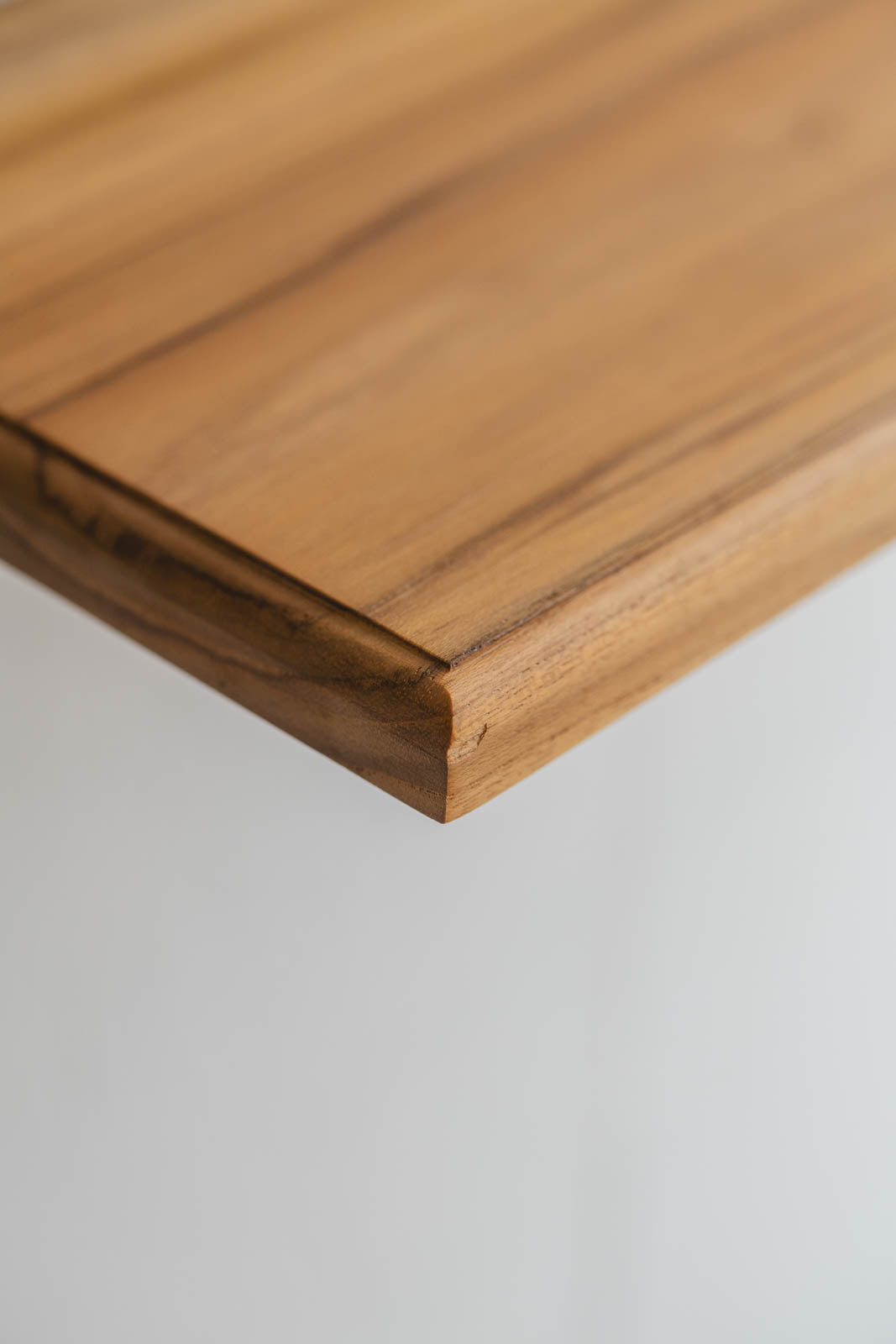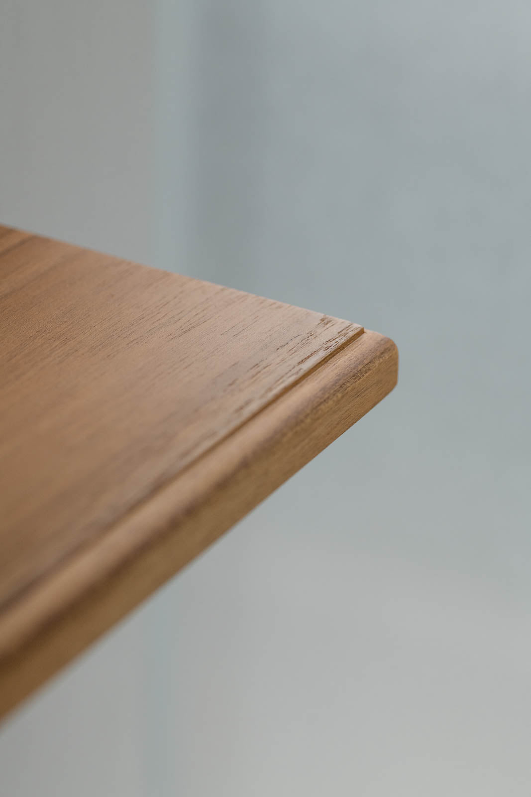 使われているのは、なめらかな手ざわりと深みのある木目が美しい無垢材。チーク特有の温かみある風合いと木目が目を惹き、さまざまな空間で活躍します。