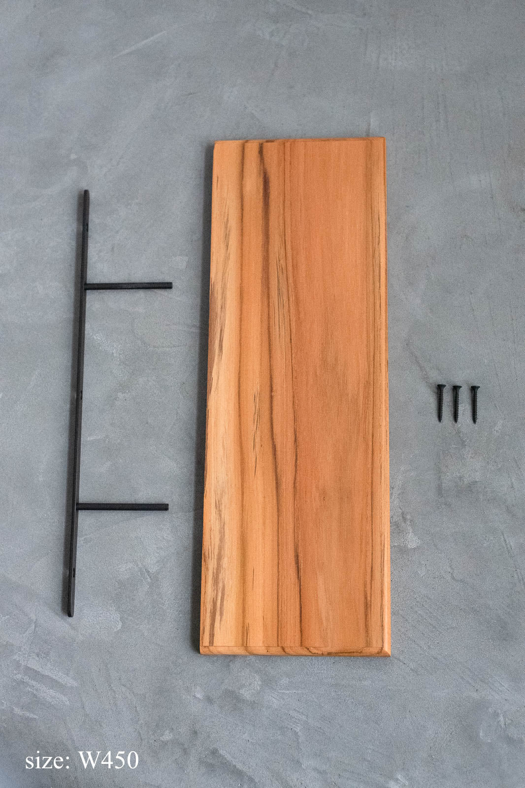 取り付け金具が見えない仕様になっており、まるで一枚の木の板が壁にそっと溶け込んでいるかのような、洗練されたデザインが特徴です。