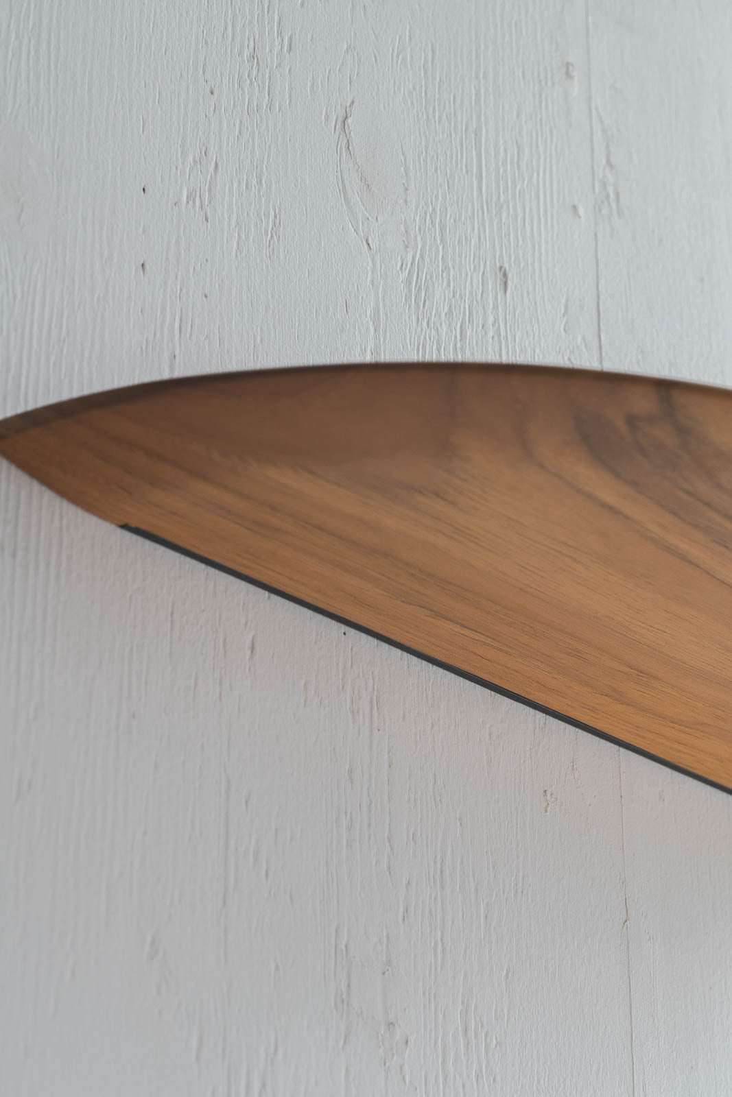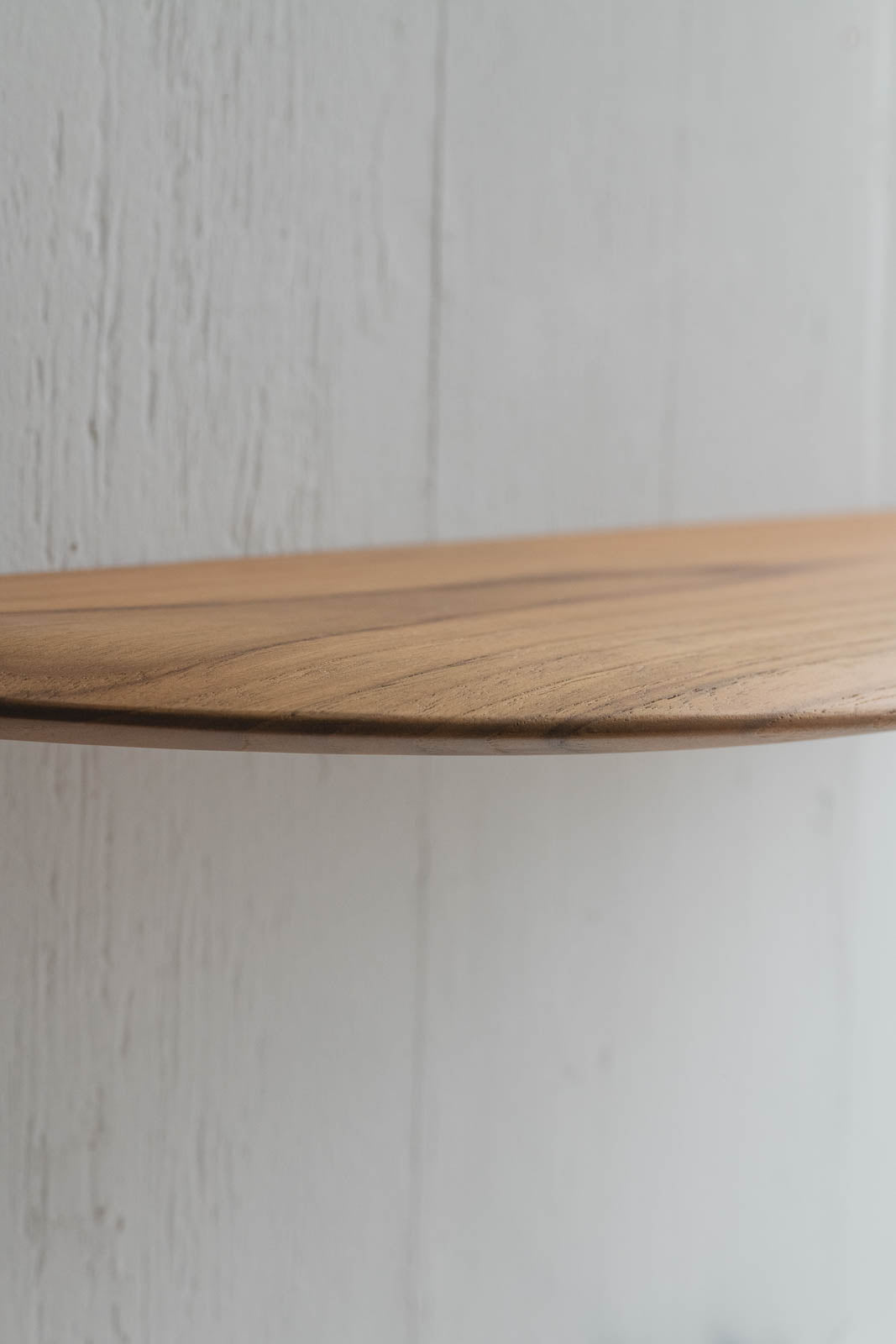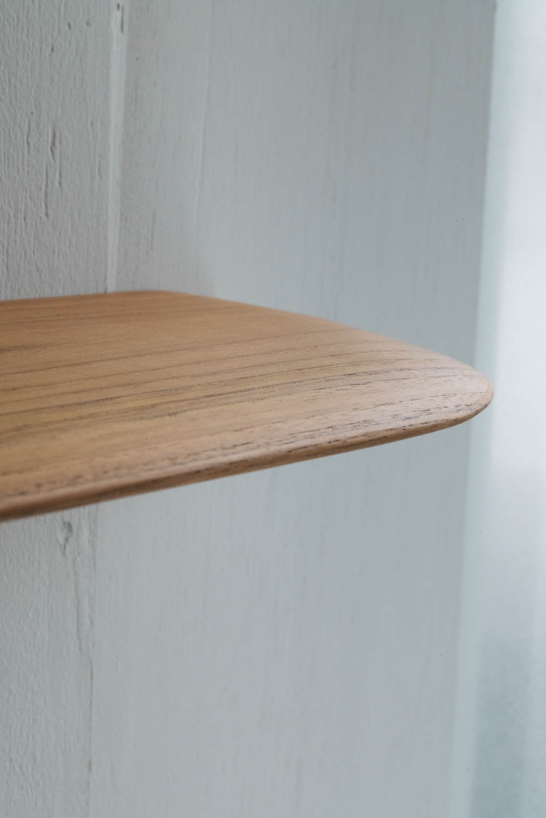 「Teak Smooth shelf」は角を丸くカーブさせたデザインが特徴です。正面から見るとすっきりとシャープな印象ながら、やわらかな輪郭がどこか穏やかな空気を漂わせます。