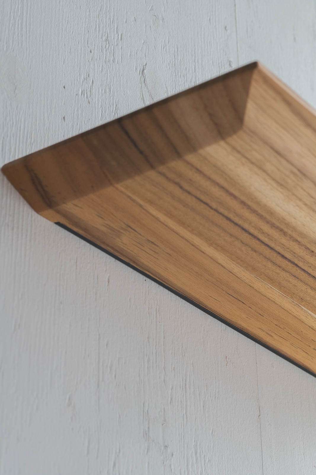 「Teak Thin shelf」は木の縁にテーパーカットが施されており、シャープなラインがさりげなく上質な印象を添えます。