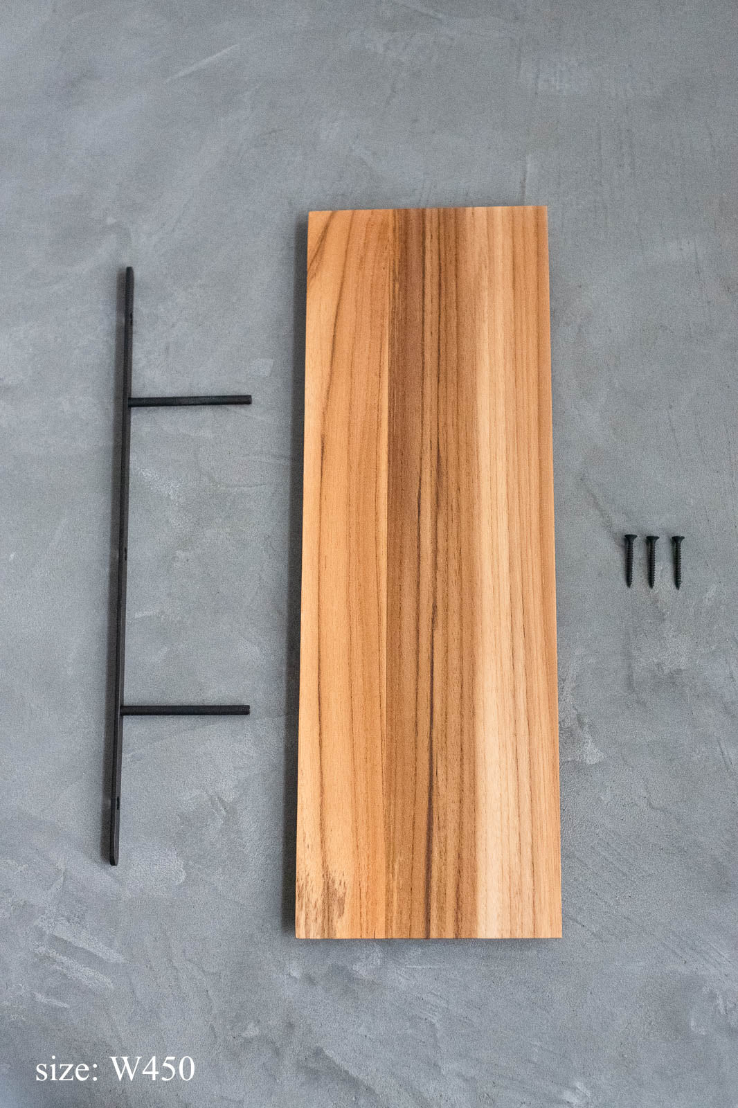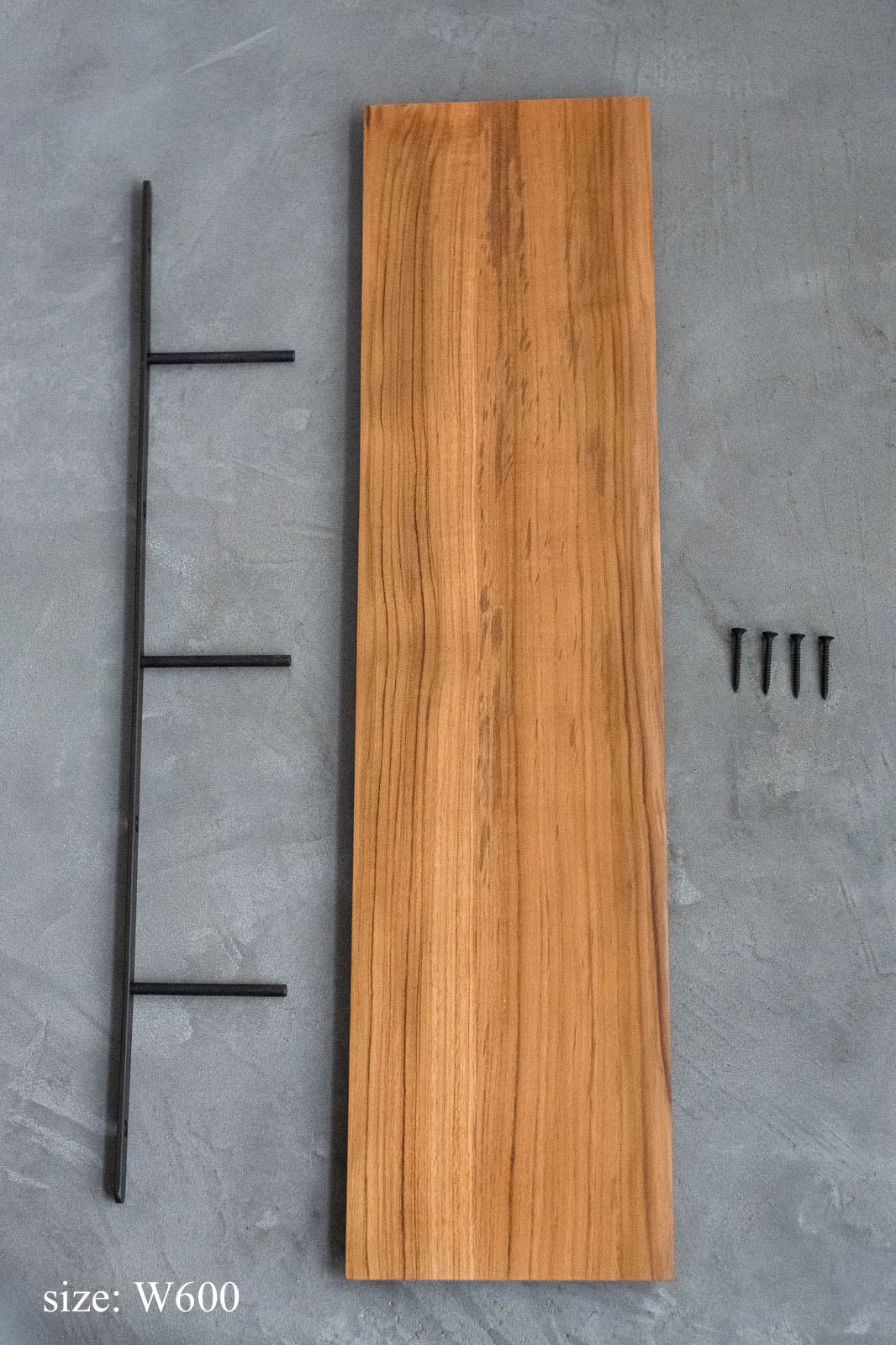 「Teak Thin shelf」は、そんな声に応える「棚受け一体型」のウォールシェルフ。棚板取り付け用の脚付バーと固定用ビスが付属するので、面倒なパーツ選びや測定の手間がなく、届いたその日からすぐに設置が可能です。