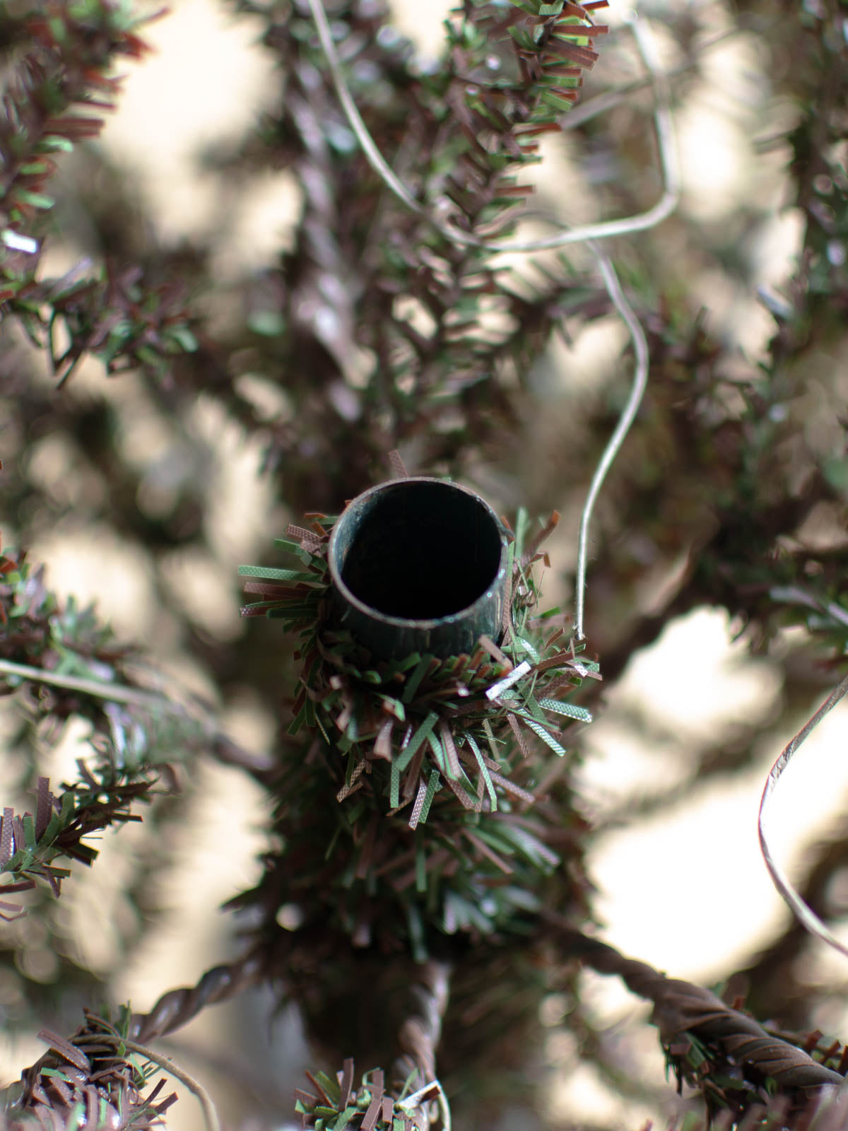到着した際は枝葉はピンと伸びた状態なので、ウェーブを付けてくねらせてみたり、くるくると渦を巻いて楽しげに、真っ直ぐなまま誇らしげに。ツリーのシルエットも枝葉の表情も飾る人の個性に応えてくれます。